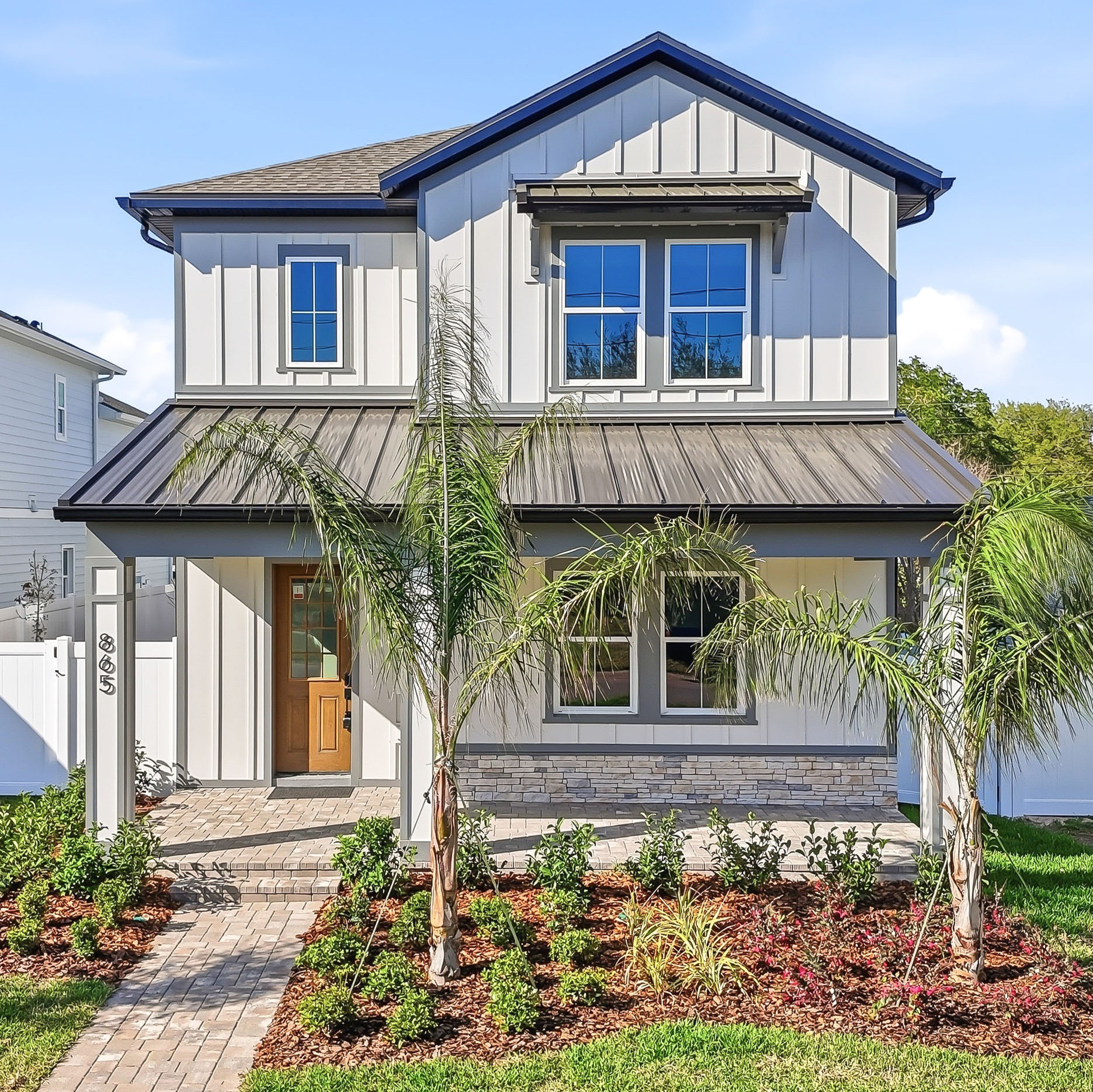 This new Solarium floor plan home in Arcadia Gardens in St. Petersburg, FL has just been completed and offers 4 bedrooms and 3.5 bathrooms. The spacious open-concept layout features raised ceilings, abundant natural light, crown molding, and high-end KitchenAid appliances. Above the detached garage is a private Additional Dwelling Unit (ADU) with its own entrance and dedicated parking—perfect for guests, extended family, workspace, or rental income. Located just a short drive from St. Pete’s beaches with easy interstate access. A builder-backed home warranty is included. One of only two homes at this location that includes an ADU.