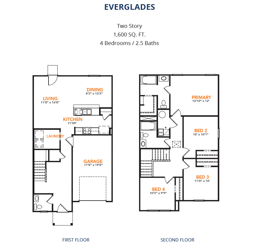The Everglades Plan from our Freedom Series offers an ideal blend of space, functionality, and value. This charming 2-story home features 4 bedrooms, 2.5 bathrooms, a 1-car garage, and 1,600 square feet of thoughtfully designed living space.