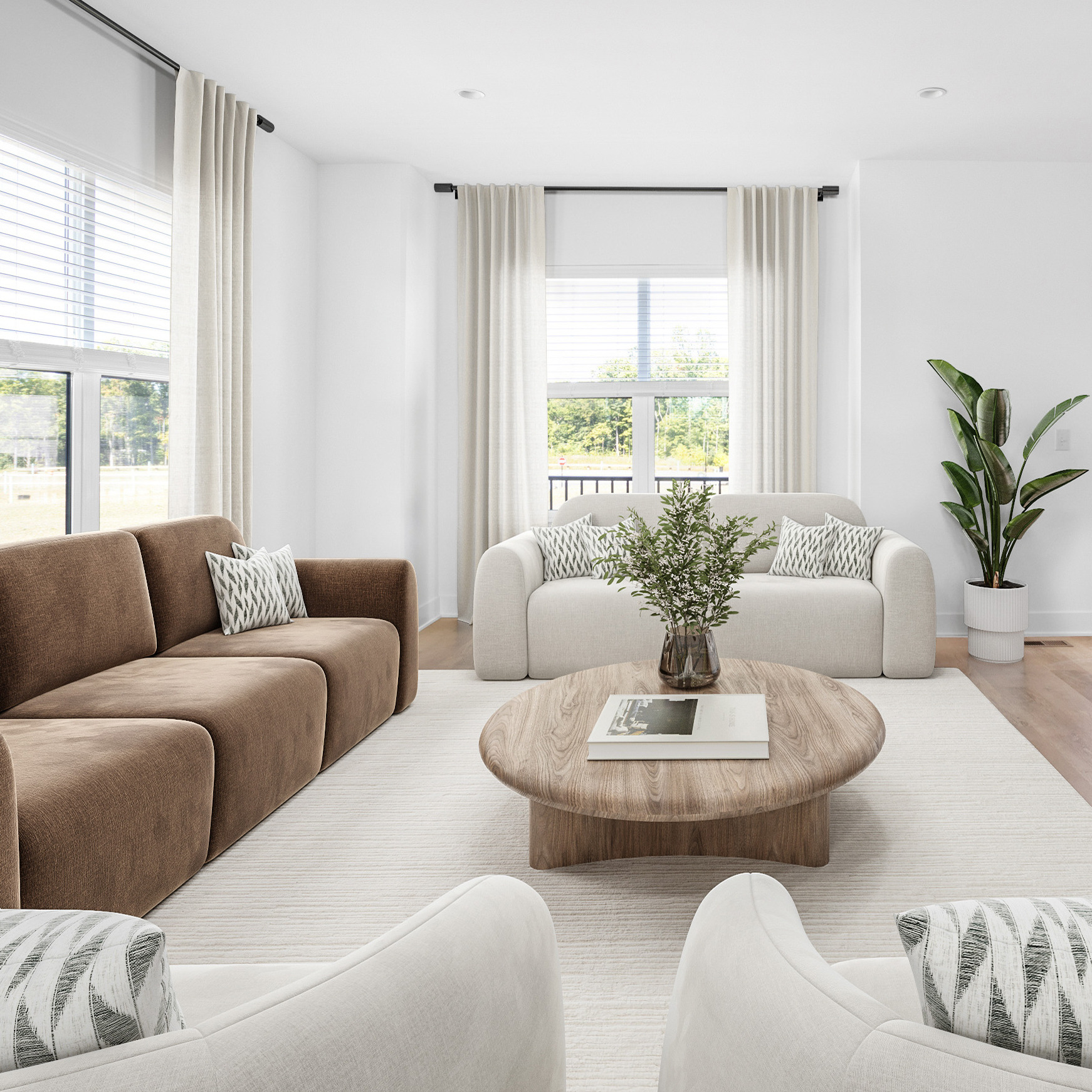 The Madrona Front Porch plan offers 2–4 bedrooms and 2.5+ baths across 1,868 square feet of flexible, beautifully designed living space. The open-concept second floor is ideal for entertaining, featuring a spacious kitchen that flows seamlessly into the dining and living areas. Choose to enhance your layout with a chef’s kitchen or add an extended patio for even more outdoor enjoyment. On the first floor, a flexible space allows you to personalize your home with options for a den, bedroom, or home office to fit your lifestyle. The upper level provides a private retreat with multiple layout options — including two or three bedrooms, a convenient laundry area, and a full bath with a classic tub or optional standing shower. The inviting covered front porch creates the perfect entry, while the available second-floor balcony extends your living space outdoors. Modern design, thoughtful details, and customizable features make it easy to craft a home that truly reflects your style. Flora is close to everything you love about Carmel — great schools, a thriving arts scene, and plenty of dining and entertainment options. And yet, it’s also surprisingly peaceful, surrounded by the natural beauty of Williams Creek Preserve. We intentionally developed this community to include green spaces, manicured park areas, and mature trees, creating a serene environment just minutes from the action.