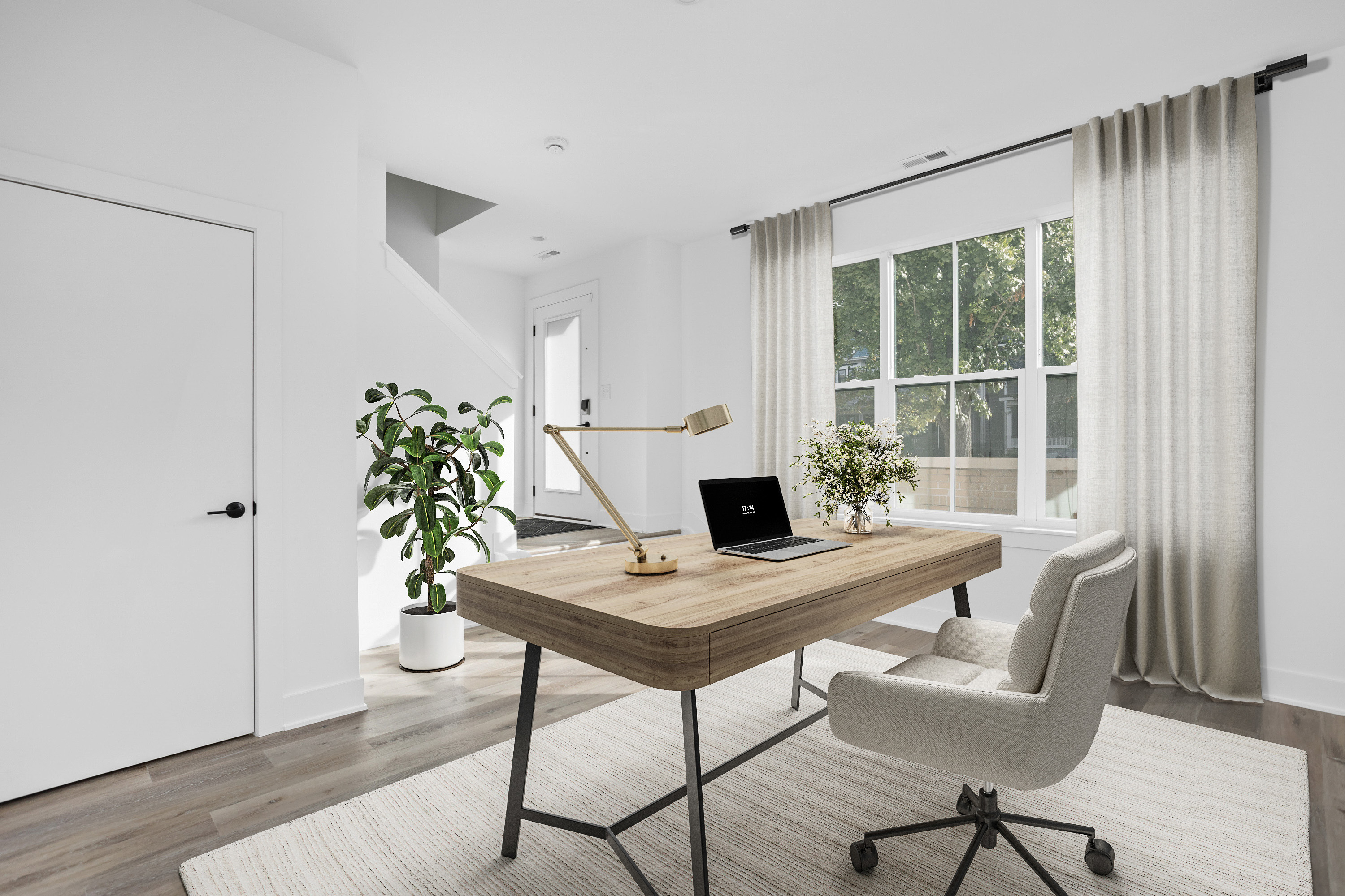 The Riley floor plan at 1232 Alabama Street delivers modern design and functional living in the heart of the Old Northside’s Nouveau community. The entry level features a versatile flex space—ideal for a home office, gym, or lounge—plus an attached 2-car garage for easy city convenience. On the main living level, an airy open-concept layout centers around a designer kitchen with island that flows seamlessly into the living and dining areas, perfect for entertaining and everyday comfort. Upstairs, the bedroom level offers two spacious suites each with its own full bath, along with a conveniently located laundry closet. Topping it all is a private fourth-floor rooftop terrace—a standout space for relaxing or hosting with skyline views. Additional highlights include approximately 2,093 sq ft, 2 bedrooms, 2.5 baths, a dedicated office/flex room, smart-home features, and stylish finishes throughout.