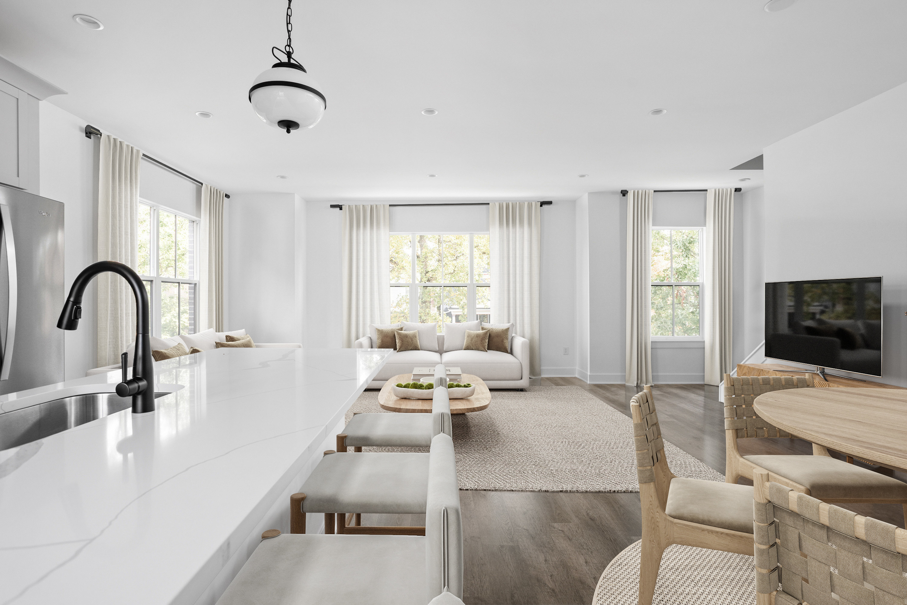 The English floor plan at 1234 Alabama Street pairs smart design with city convenience in the heart of the Old Northside’s Nouveau community. The entry level features a welcoming mudroom and attached 2-car garage for effortless everyday living. On the main living level, an open-concept layout connects the kitchen, dining, and living areas—highlighted by quartz countertops, an eat-in island, and a convenient powder bath—perfect for entertaining or relaxing at home. Upstairs, the bedroom level offers a spacious primary suite with a walk-in shower, dual-sink vanity, and large closet, plus a second bedroom, full bath, and laundry. Topping it all is a private fourth-floor rooftop deck with sweeping city views—an ideal retreat for hosting or unwinding. Additional highlights include approximately 1,643 sq ft, 2 bedrooms, 2.5 baths, a mudroom entry, smart-home features, and modern finishes throughout.