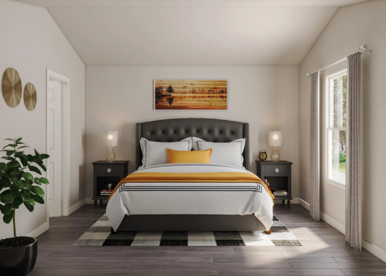 The Yosemite Plan from our Freedom Series is a cozy and efficient single-story home featuring 3 bedrooms, 2 bathrooms, a 1-car garage, and 1,202 square feet of smartly designed living space.This split-level floorplan places two secondary bedrooms and a full bathroom at the front of the home, offering privacy and convenience. Continue into the open-concept living area, where the kitchen with a central island overlooks the dining area and family room—perfect for meals, gatherings, and quality family time. The primary suite is thoughtfully positioned off the family room for added privacy and includes a private bathroom and walk-in closet. The laundry room is also conveniently located on this side of the home for easy access.