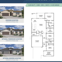 Step into the epitome of modern living with our 2,254-square-foot home featuring room for three cars, seamlessly balancing comfort and versatility. This thoughtfully crafted residence boasts a master bedroom privately separated from two additional secondary bedrooms, a flexible den or dining space, and a welcoming great room that harmoniously merges living and dining areas. The spacious great room opens onto a large patio, with the option for an extension, perfect for entertaining or relaxation. Customization is key, with choices including a fourth bedroom, a versatile casita, or the luxury of dual master suites. Whether you seek additional space for a growing family or desire the flexibility to tailor your living spaces, this home invites you to embrace a lifestyle that suits your unique needs and preferences.