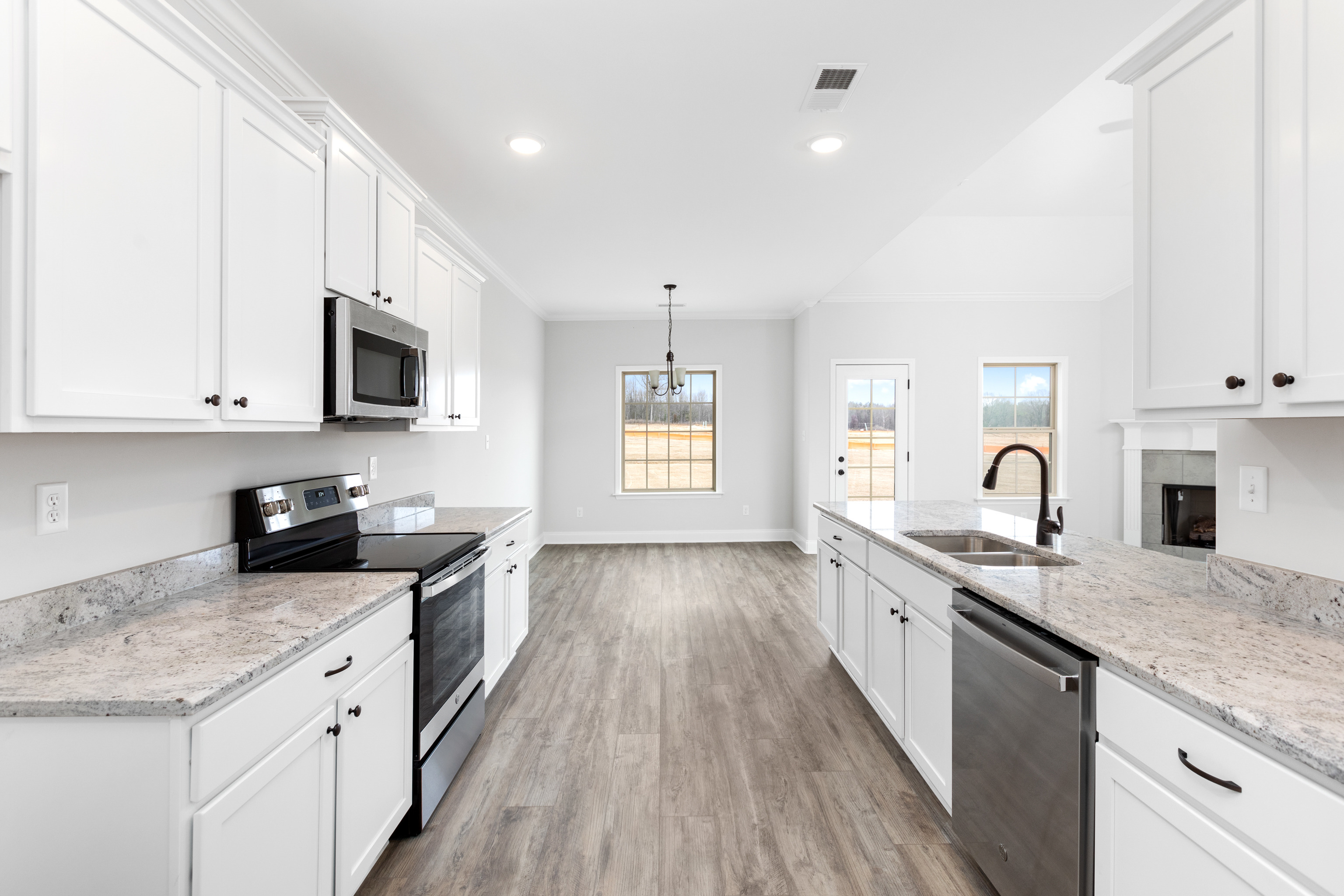 This beautiful home offers an open concept floor plan with the kitchen and eating area looking in the family room with fireplace. Walking into the home you will see LVP flooring throughout the foyer, family room, dining room, kitchen with eating area and hallways. The kitchen contains stainless steel appliances with granite counter tops.