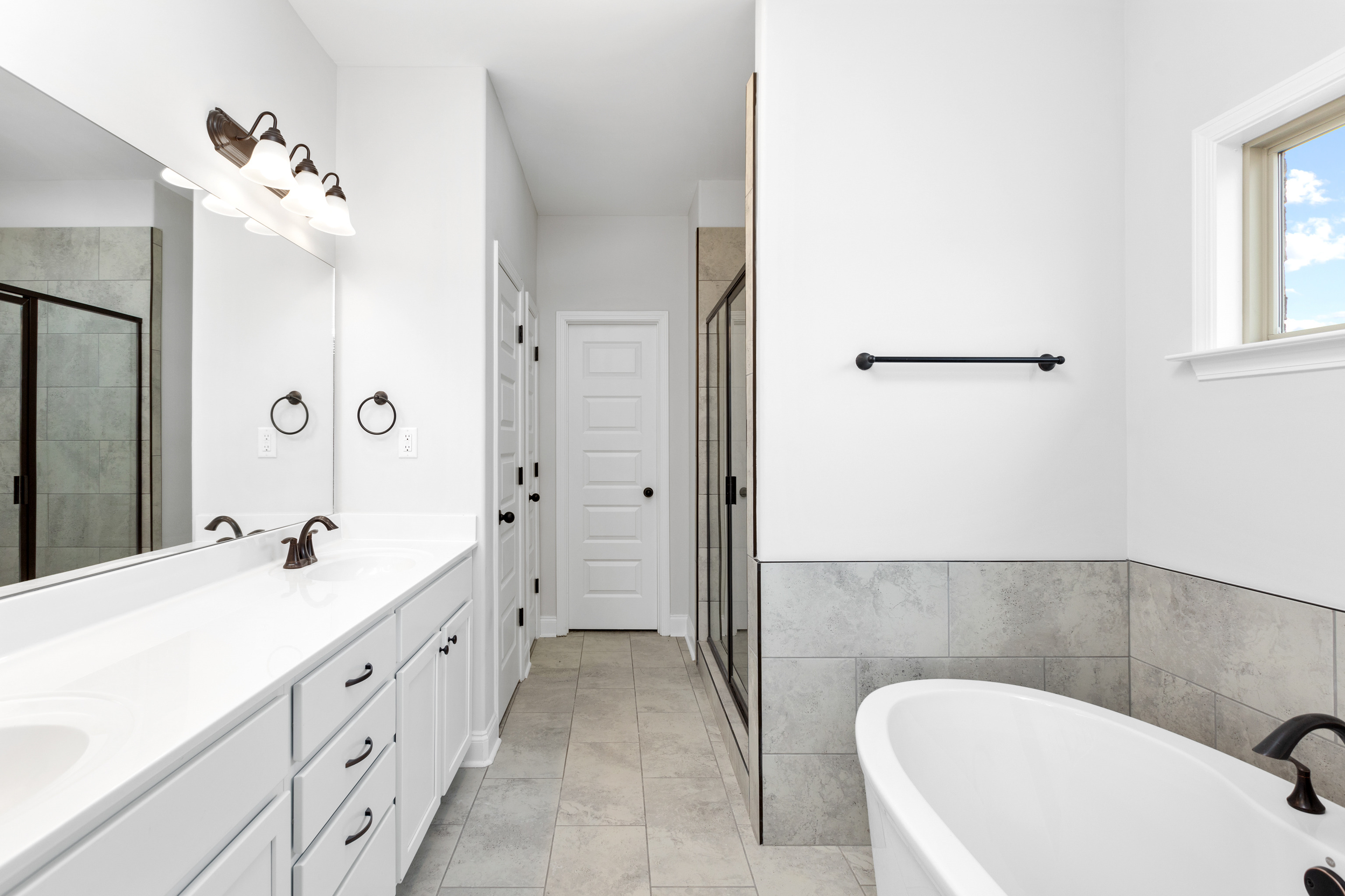The master bedroom is on one side of the home with a large master bath with a stand-alone tub and tile shower. Share a vanity with two sinks and a large walk-in closet. On the other side of the downstairs, you will find two additional bedrooms and a bathroom. There is also a large utility room with LVP flooring. Upstairs you will find a large bonus room with closet (4th bedroom).