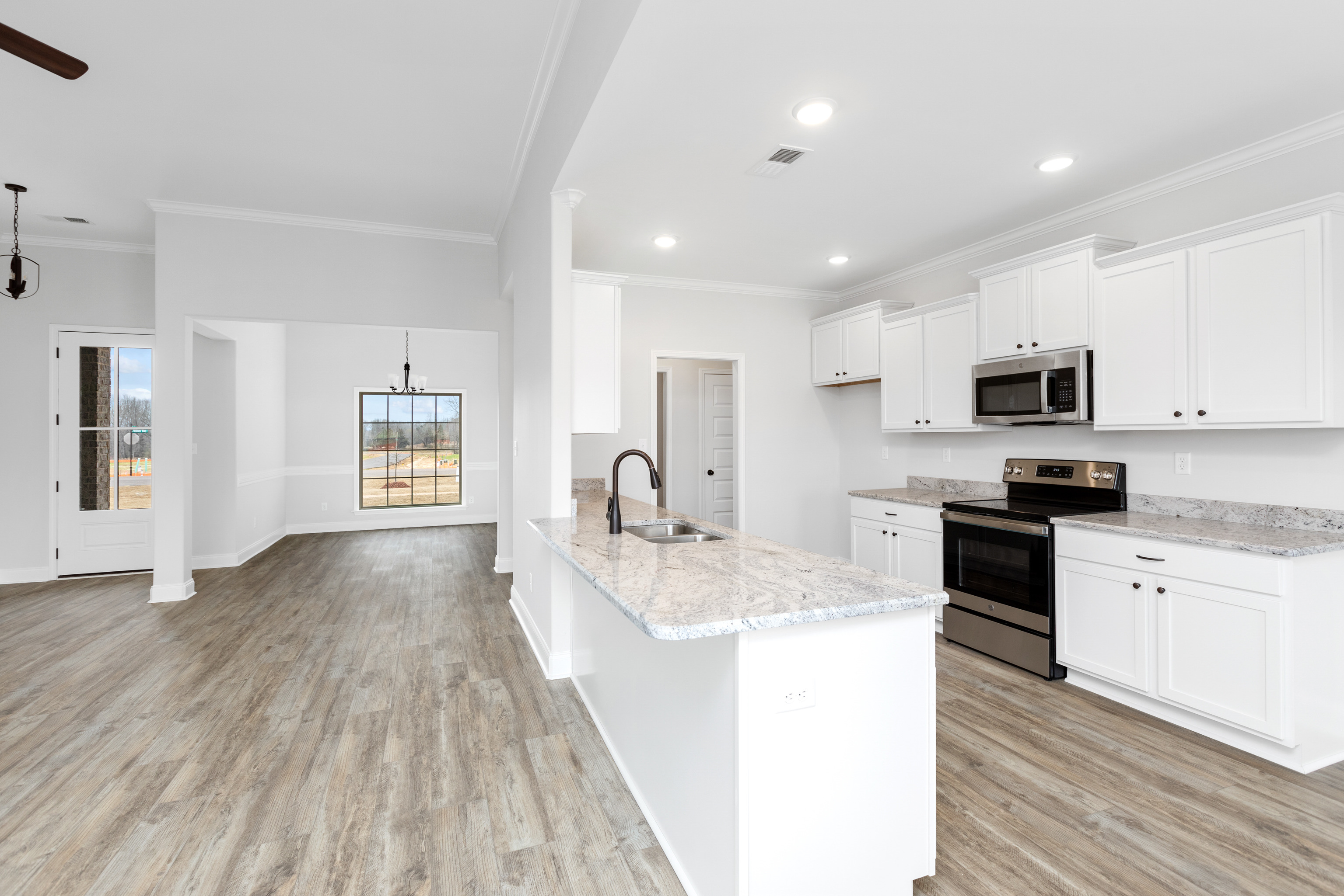 This beautiful home offers an open concept floor plan with the kitchen and eating area looking in the great room with fireplace. Walking into the home you will see LVP flooring throughout the foyer, great room, kitchen with eating area, and hallways. The kitchen contains stainless steel appliances with granite counter tops.