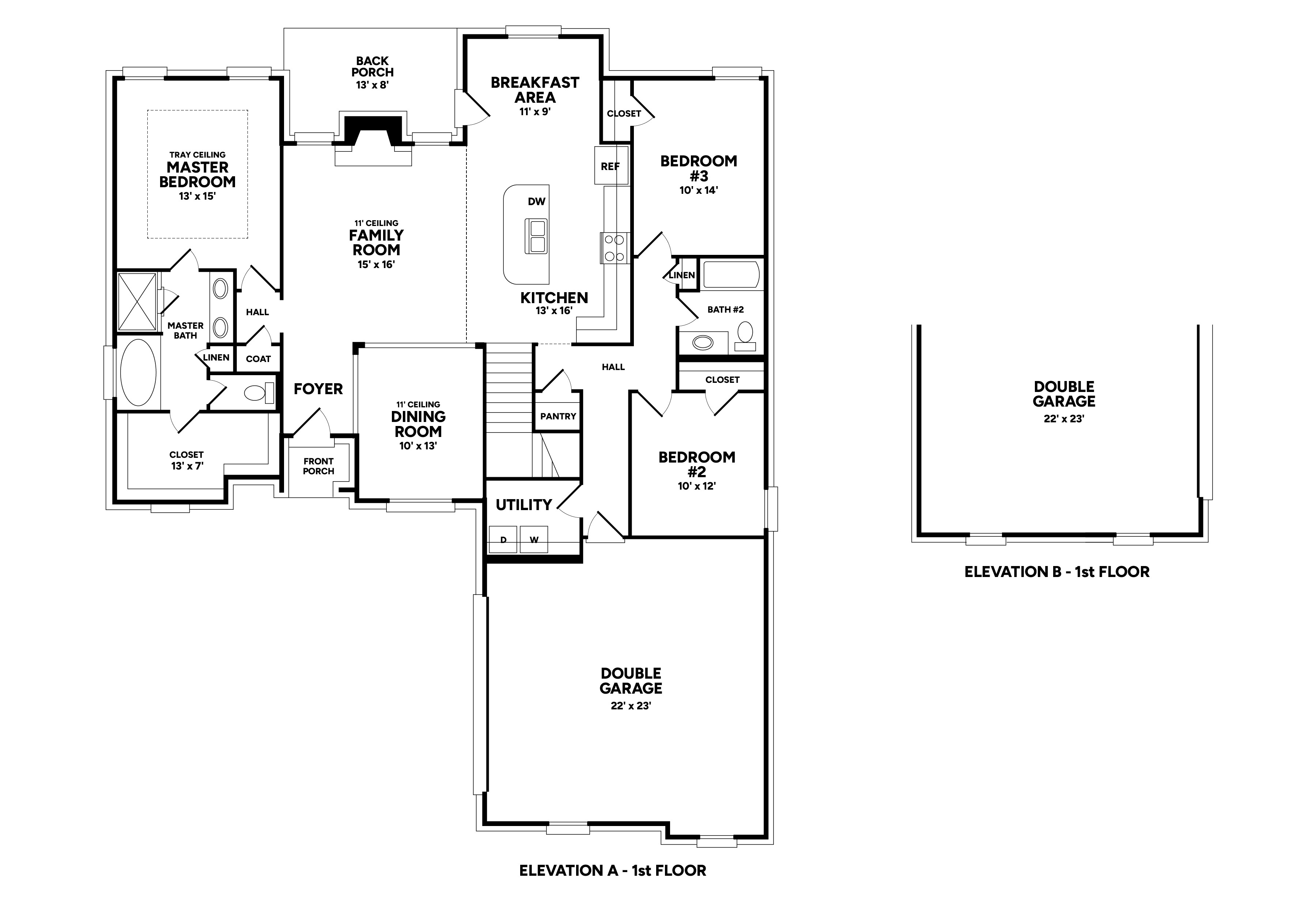 The master bedroom is on one side of the home with a large master bath with a stand-alone tub and tile shower. Share a vanity with two sinks and a large walk-in closet, big enough for two. On the other side of the downstairs, you will find two additional bedrooms and a bathroom. There is also a large utility room with LVP flooring. Upstairs you will find a large recreational room with closet (4th bedroom).