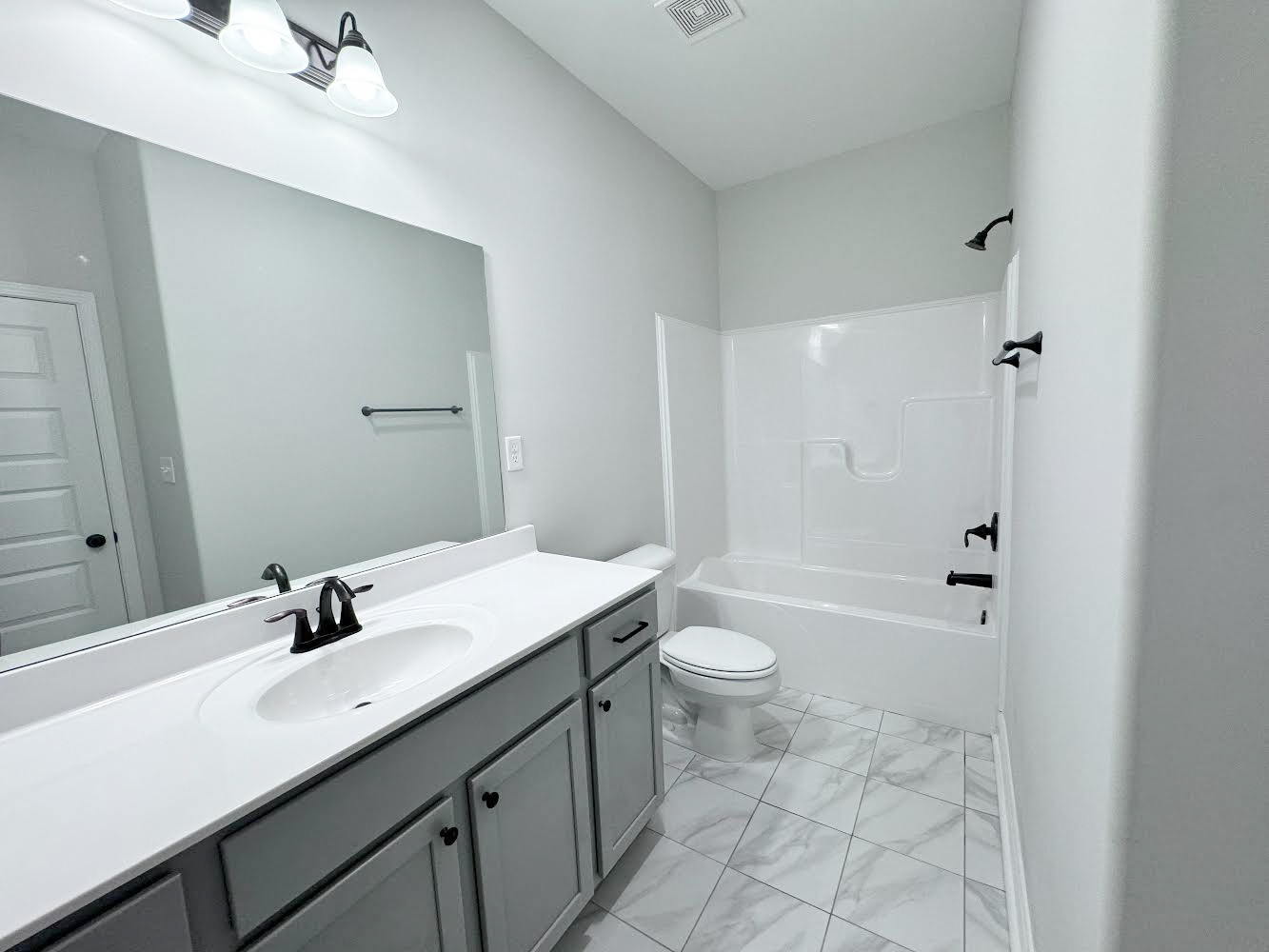 On one side of the home, you will find the master bedroom which includes a stand-alone tub, tile shower, vanity with two sinks, and two large walk-in closets. The opposite side of the downstairs has two additional bedrooms, bathroom, and walk in utility room with LVP flooring to include a pantry. Head upstairs to find a large recreational room with closet (4th bedroom).