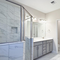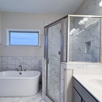 The large master bedroom contains trayed ceilings. You walk into a bathroom with a large tile shower, stand-alone tub, vanity with two sinks, and a large walk-in closet. You will also find the utility room with LVP flooring on this side of the downstairs. On the other side of the downstairs, you will find two more bedrooms and a bathroom. Upstairs is a large recreational room with a closet (4th bedroom).