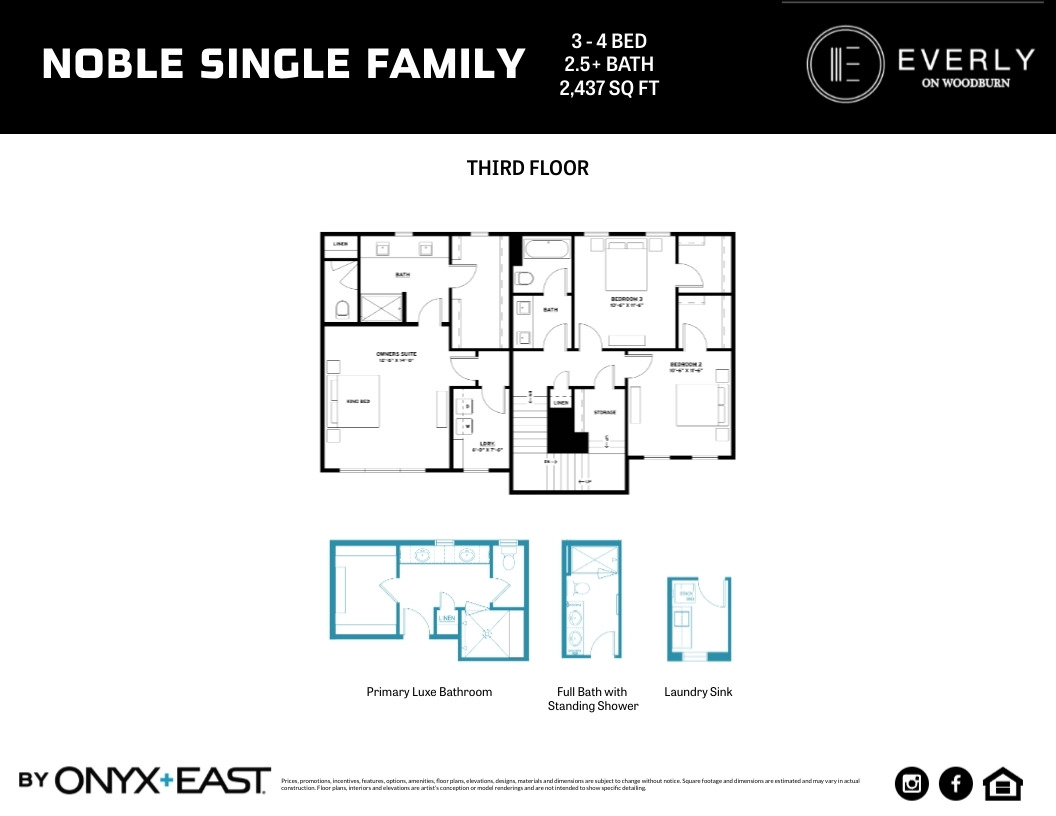 The Noble plan at Everly offers 3–4 bedrooms and 2.5+ baths across 2,437 square feet of thoughtfully designed living space. Spanning three levels, this modern home features an open main floor with an entertainer’s kitchen that seamlessly connects to the living and dining areas. A flexible main-floor space allows you to personalize your layout — ideal for a home office, gym, or guest suite — while the private bedroom level provides a serene retreat. An expansive rear balcony overlooks mature trees, creating a peaceful backdrop for relaxing or entertaining. With an attached two-car garage, generous natural light, high ceilings, and sophisticated finishes, the Noble combines functionality, style, and comfort in equal measure. Everly is located in East Walnut Hills — one of Cincinnati’s hottest neighborhoods, known for its growing collection of local eateries, cozy coffee shops, and craft breweries. Close to great schools and many of the city’s main attractions, this community offers both convenience and charm. Plus, Everly is designed to achieve Silver LEED certification, meaning each home is built with sustainability, efficiency, and your well-being in mind. With only three single-family homes available, this limited release is a rare opportunity to own new construction in one of Cincinnati’s most vibrant neighborhoods.