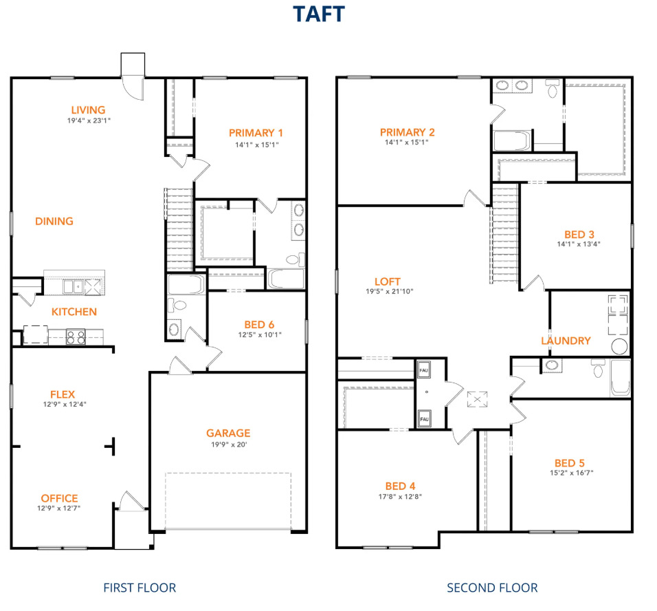 As you enter the Taft, you’ll pass a versatile office and a flexible room that can be customized to fit your needs. Continue into the open-concept living area, where the kitchen with an island overlooks the dining area and spacious family room, creating the perfect space for family gatherings and entertainment. The main level also includes a primary suite off the family room, an additional bedroom, and a full bathroom, offering plenty of space for everyone. Upstairs, the second primary suite offers a private retreat, while 3 additional bedrooms, another full bathroom, a laundry room, and a spacious loft complete the upper level.