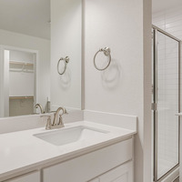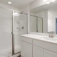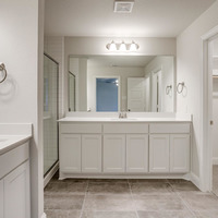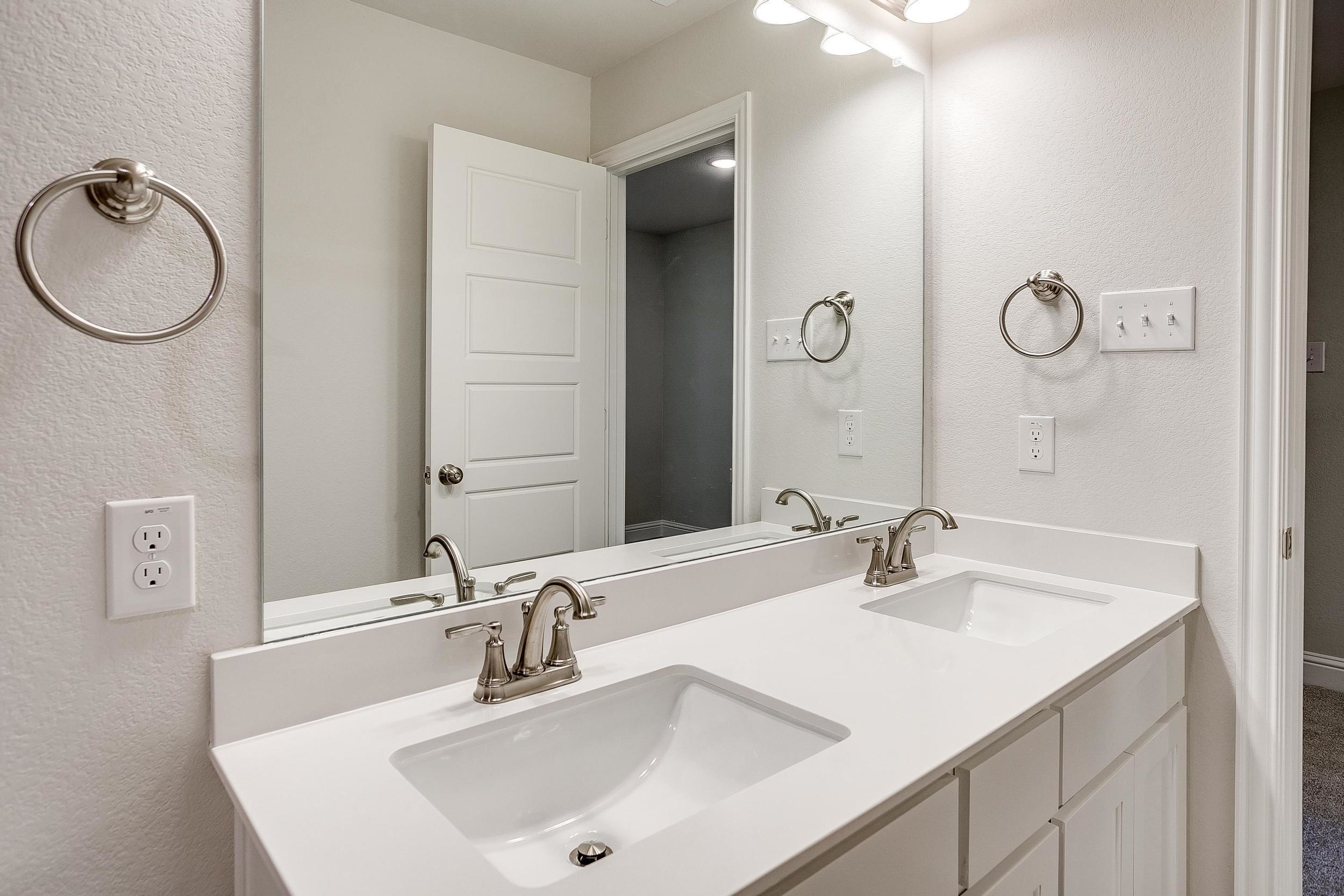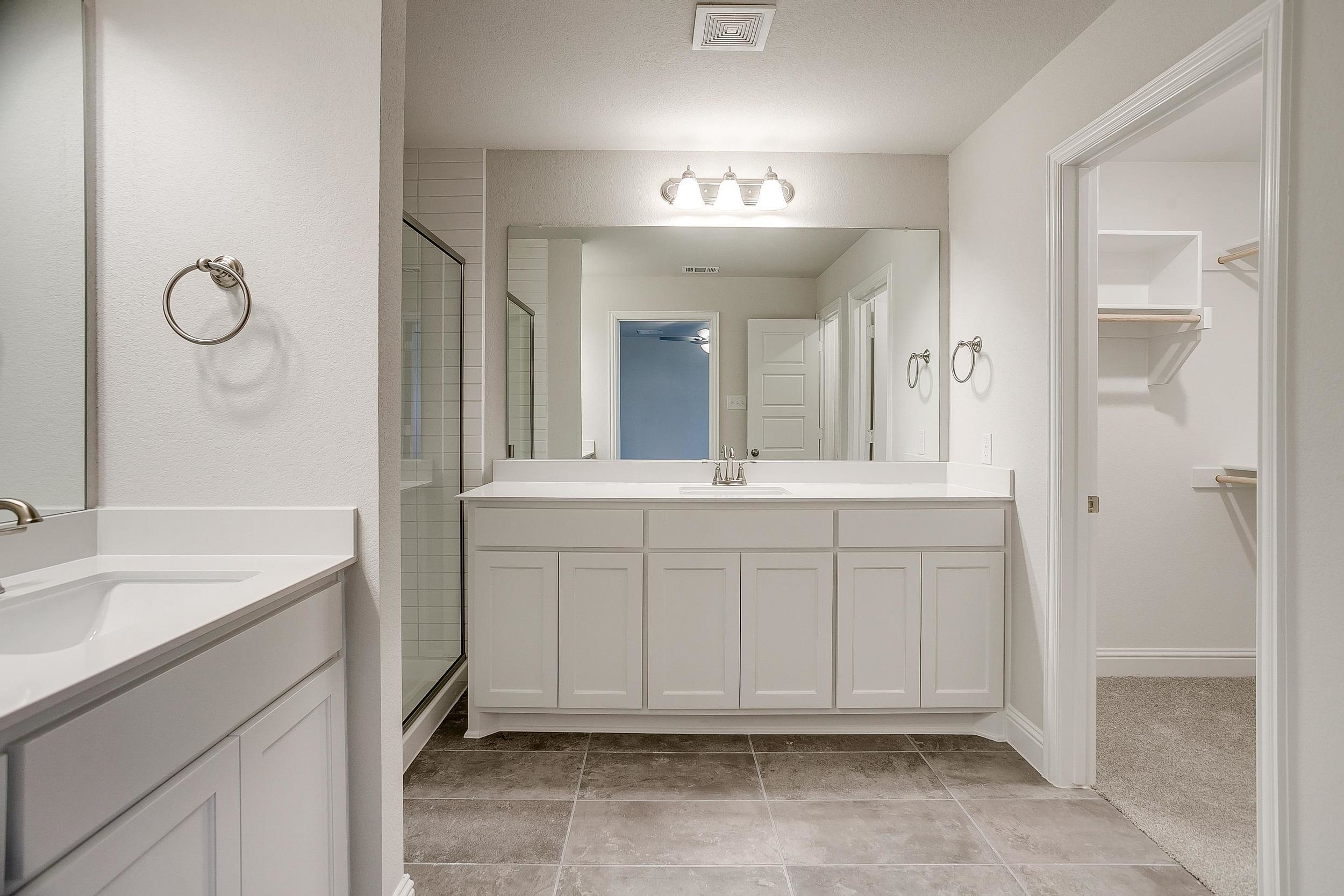 Upstairs, the private primary suite becomes your personal retreat—complete with dual vanities, sleek 12x24 tile, a large glass-enclosed shower, and an expansive walk-in closet. Two additional bedrooms, a well-appointed bathroom with double sinks, and a dedicated utility room provide thoughtful separation and convenience.