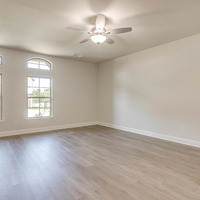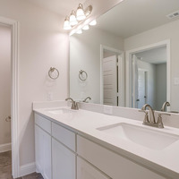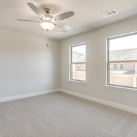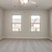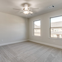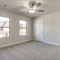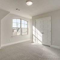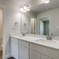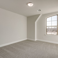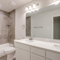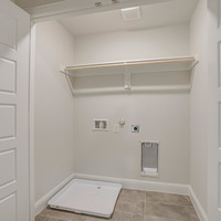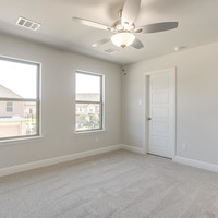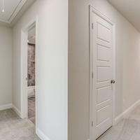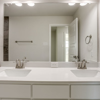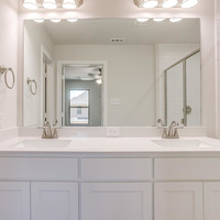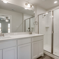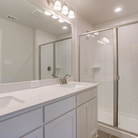 Upstairs, the tranquil primary suite feels like a private spa retreat with its expansive double vanity, upscale 12 × 24 tile detailing, roomy glass-enclosed shower, and generous walk-in closet. Two additional bedrooms share a well-appointed bath with dual sinks, while the nearby utility room keeps laundry day conveniently close at hand.