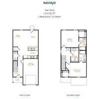The Navajo Plan from our Celebration Series offers a thoughtfully designed two-story layout that blends open main-level living with private bedroom suites upstairs. With 2 bedrooms, 2.5 bathrooms, and 1,212 square feet of well-planned space, this home is ideal for buyers seeking comfort, efficiency, and modern design. The main level welcomes you with a covered front porch and foyer, leading into a hallway that opens to the kitchen, dining, and family room. The kitchen features an island with breakfast bar seating and generous counter space, opening to the dining and family room for easy everyday living. A patio door off the dining and living space provides access to outdoor enjoyment, while a convenient half bath completes the main level.