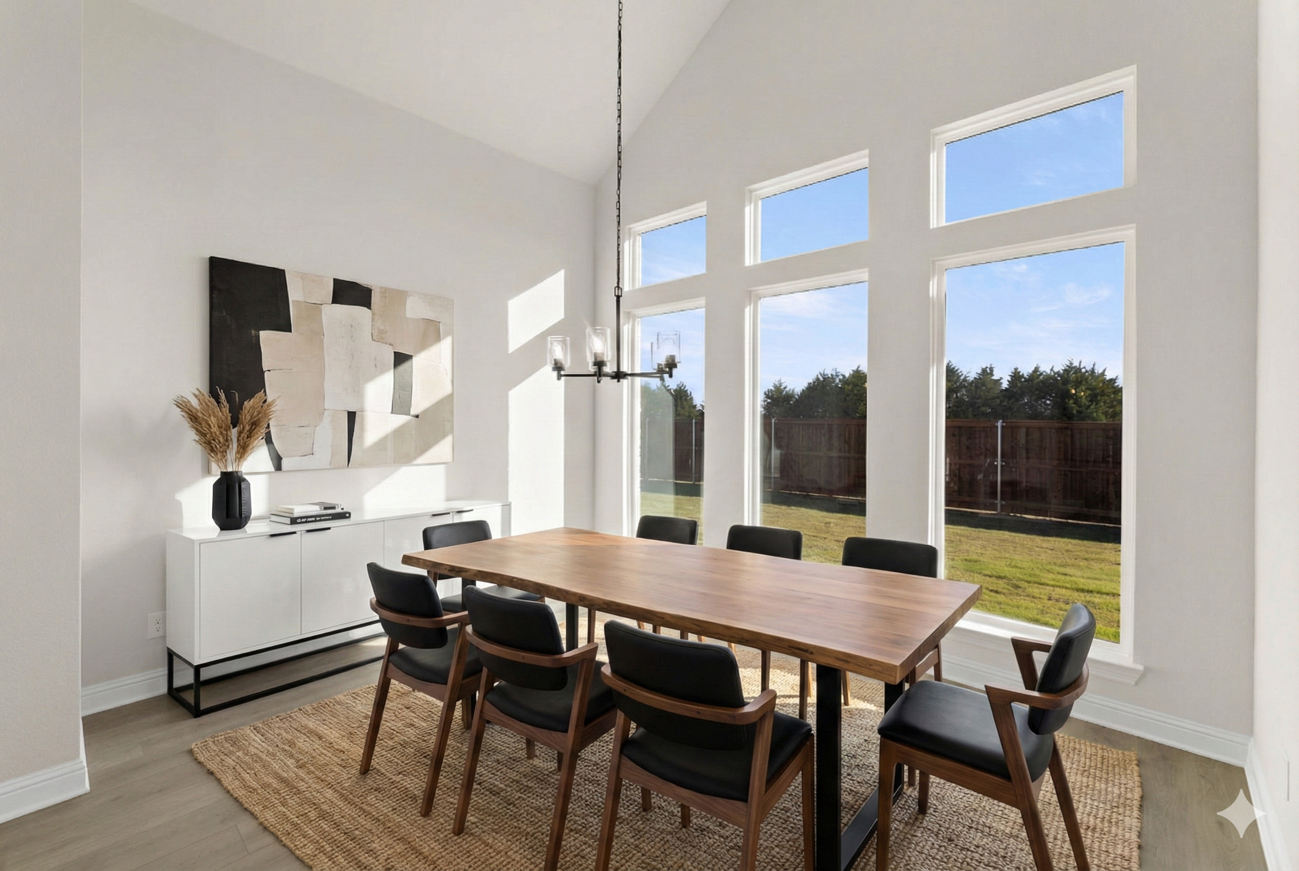 NEW JOHN HOUSTON HOME IN MIDLOTHIAN! This smart home offers 4 bedrooms and 3 bathrooms. The 12-foot ceilings, along with the floor-to-ceiling windows, make this home feel GRAND. The chef's kitchen features a 36" gas cooktop, single wall oven, pot and pan drawers, all-wood custom cabinets, a large wood wrapped island, and a trash rollout, creating an inviting atmosphere for cooking and entertaining. The primary suite is a true retreat, featuring a deluxe bath, dual vanity, and a spacious primary closet. READY NOW!