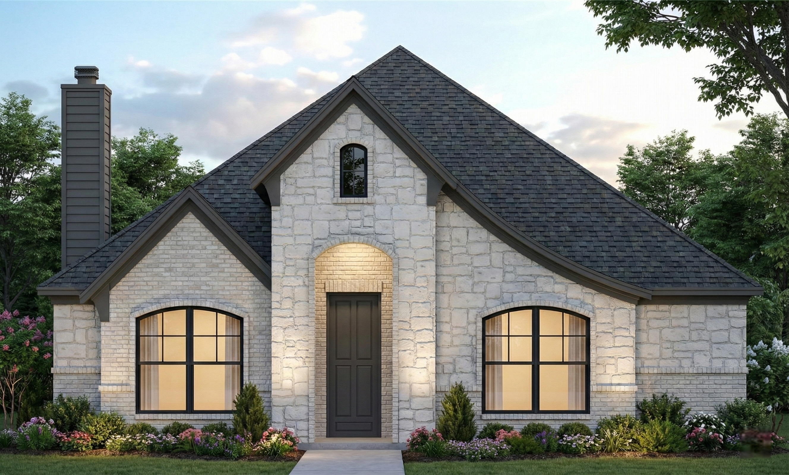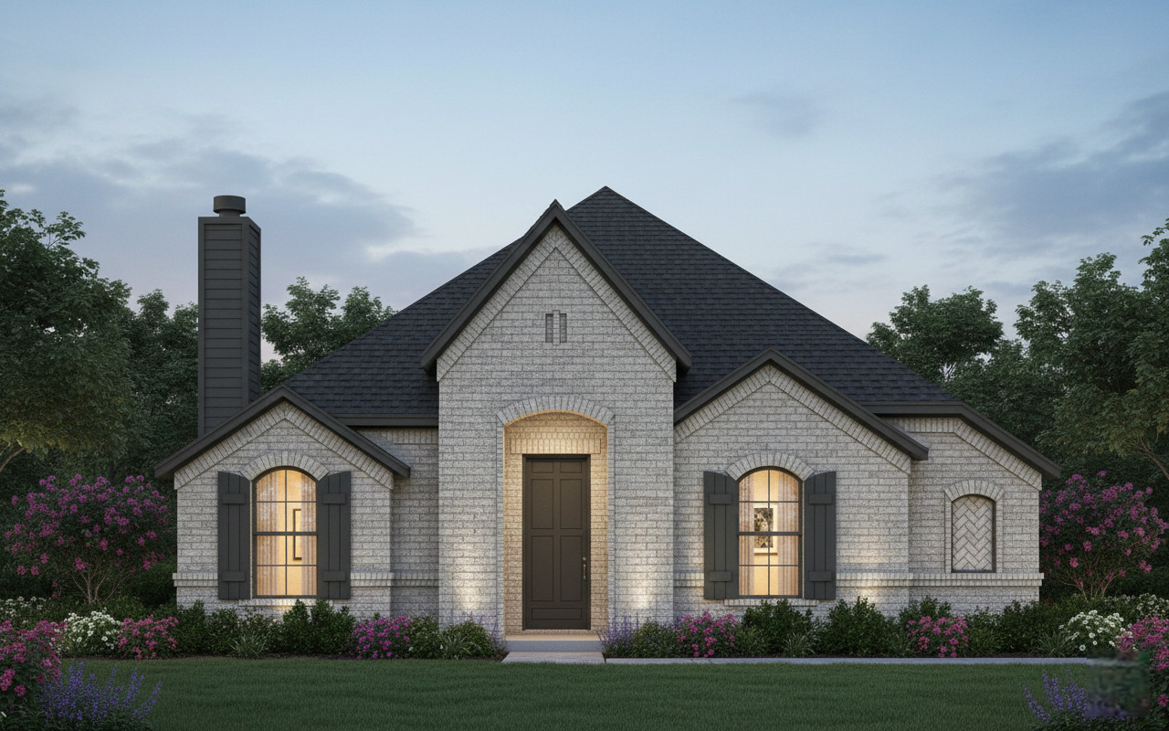 The Eisenhower floorplan offers 3 bedrooms, 2 baths, and 2 car rear entry garage all on one story. It also includes a study, extended entry way and split vanities in the master bathroom. Optional features include a 4th bedroom in place of the study, a second "his" closet in the master bedroom and covered patio. Options, square footage, room count, and room dimensions are approximate, subject to change without notice, and vary by elevation and community.