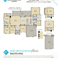 The Madrid floor plan is a 1-story open-concept home with 4 bedrooms, a study, 3 full bathrooms, and a 2-car side entry garage. Unique features in this home include vaulted ceilings in the family room and master suite, a large dining area connecting the kitchen and family room, a spacious kitchen with a large island and ample counter space, luxury master bath with huge master closet, and an oversized covered patio. Available options in this home include a game room, outdoor fireplace, shoe box in master closet, and a side entry 3rd bay garage. Options, square footage, room count, and room dimensions are approximate, subject to change without notice, and vary by elevation and community.