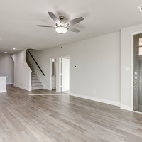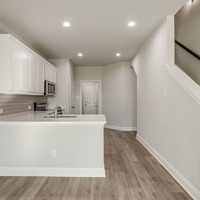 Inside, the thoughtfully designed main floor features durable luxury vinyl plank flooring and an airy open-concept layout that seamlessly connects the living and dining areas—perfect for hosting or relaxing. The gourmet kitchen impresses with stainless steel appliances, custom-painted cabinetry, a sleek subway tile backsplash, upgraded countertops, and a spacious pantry for all your storage needs. A convenient powder bath adds to the main level’s functionality.